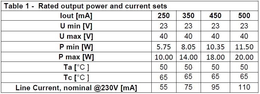 Output current range 250-1050 mA